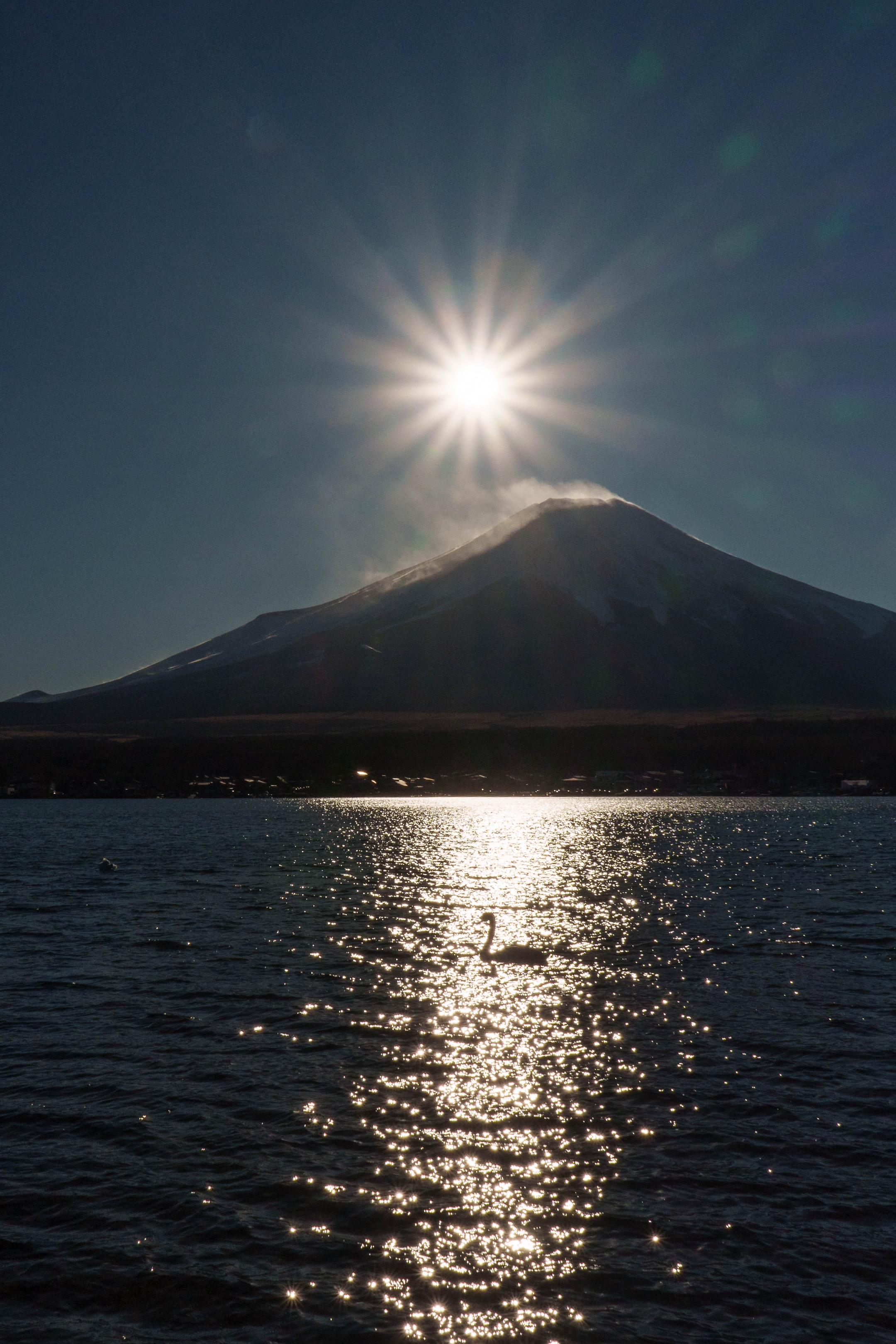 山中湖の湖畔からのダイヤモンド富士です。
