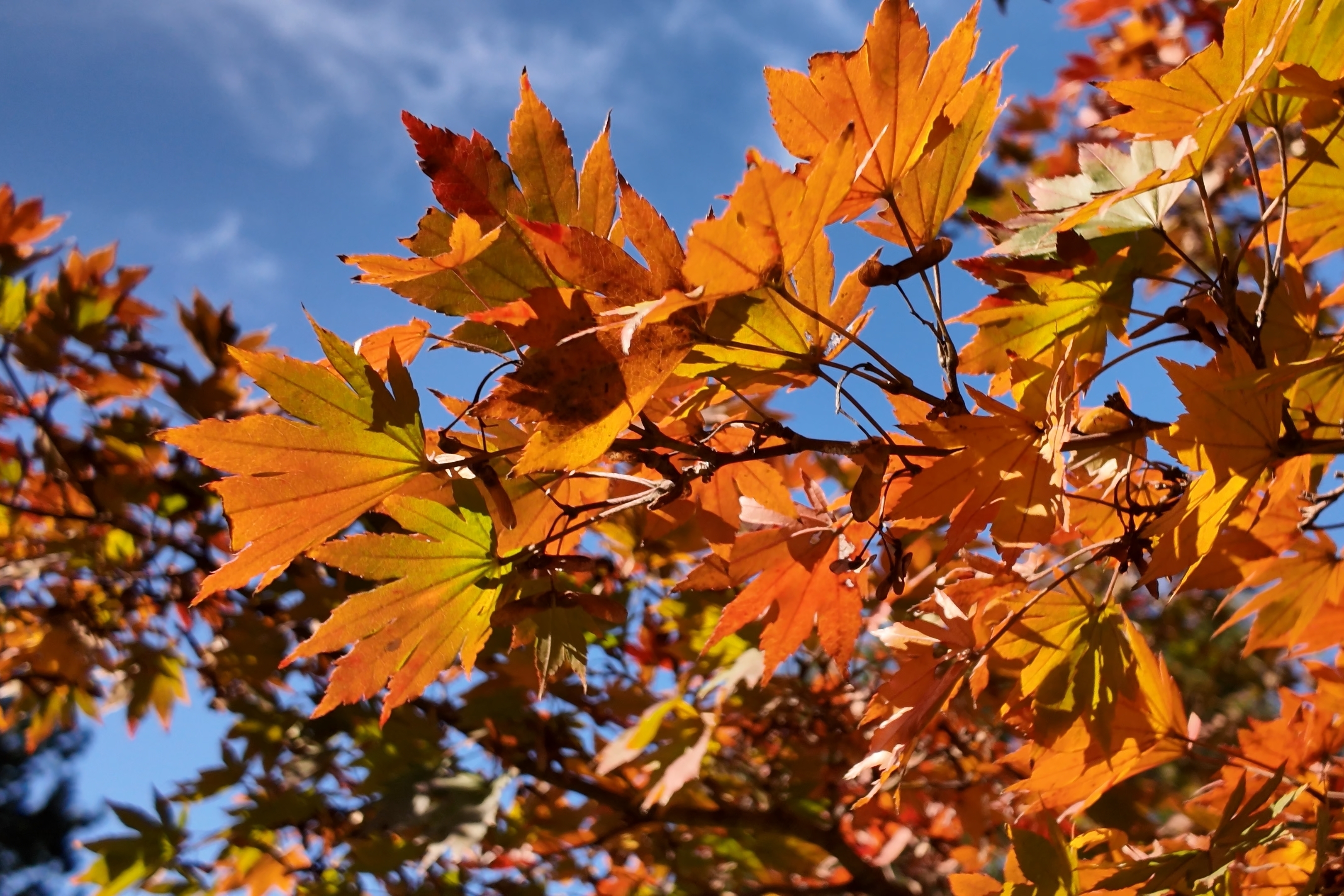 日本庭園のもみじが色付き始めました。